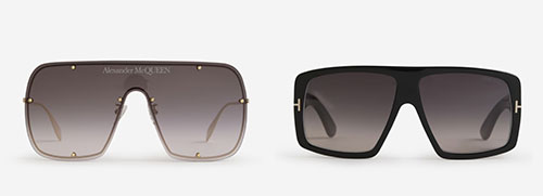 De la inspiración de los años 50 nos trasladamos a las décadas de los 70 y los 80, un periodo de extravagancia en la que las gafas aumentaron de tamaño y adquirieron una apariencia más arriesgada. Para este 2023 encontramos dos modelos con cristales XL y cuadrados que firman Alexander McQueen y Tom Ford.