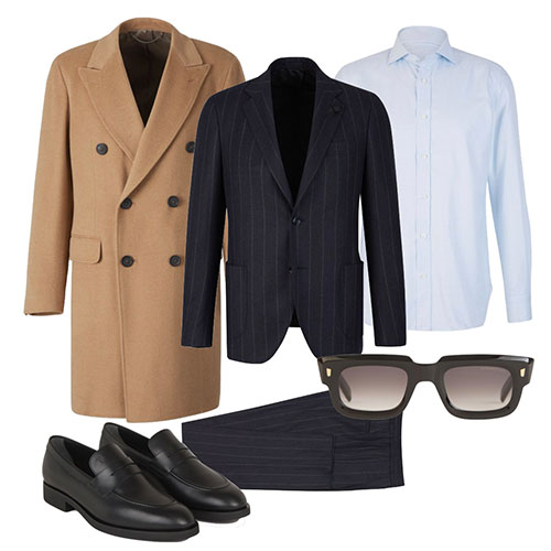 Abrigo de Canali, traje de Lardini, camisa de Borrelli, zapatos de Tod’s y gafas de Cutler & Gross