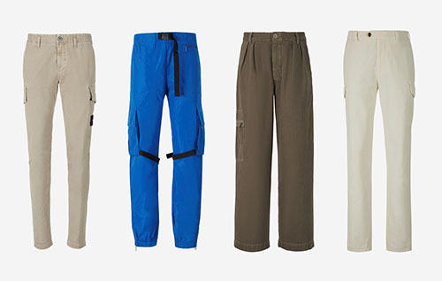 Otra de las tendencias con mayor éxito de las últimas temporadas son los pantalones repletos de bolsillos laterales. Conocidos como ‘cargo’, esta temporada podrás optar por una amplia variedad de diseños, desde el modelo efecto paracaidista de Off White, el diseño ancho de Jacquemus o un elegante pantalón beige de Brunello Cucinelli para tus estilismos más formales.