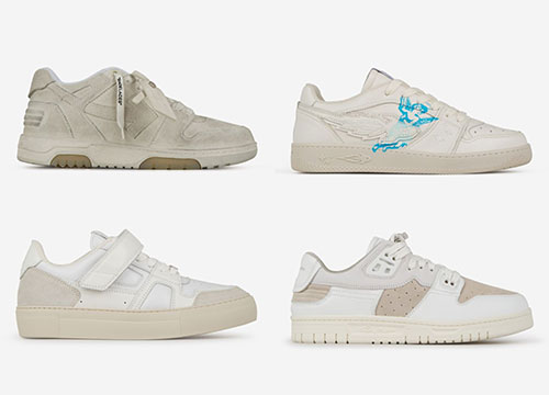 Las propuestas de calzado masculino se rodean de nostalgia reinventando los diseños más populares de los 90 con una amplia variedad de deportivas blancas repletas de detalles en blanco roto, ante y toques de color.