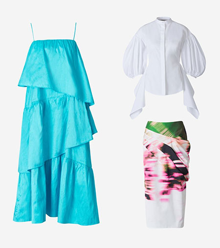 Siguiendo con este estilo romántico, los volúmenes pueden ser tu gran aliado. Elige piezas que jueguen con la superposición de capas, como el modelo asimétrico de Moré Noir disponible en azul y blanco marfil. Si prefieres apostar por un conjunto de dos piezas, combina una blusa con mangas abullonadas, como el modelo que firma Alexander McQueen, junto a una falda drapeada y con estampado de Dries Van Noten.