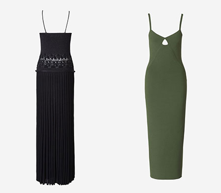 Esta primavera y verano, los cortes en las prendas, conocidos popularmente como cut outs, se han convertido en una de las tendencias más destacadas. En las colecciones de Christopher Esber y Khaite encontrarás distintos vestidos largos de punto que incluyen aperturas, cortes y entramados semitransparentes. Para conseguir un resultado más formal, la clave se encuentra en la elección de complementos, como pendientes, collares o incluso accesorios para un recogido, que aporten ese punto sofisticado y elegante.