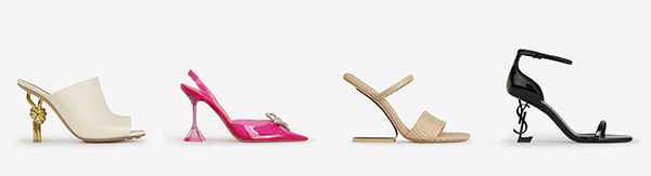 De izquierda a derecha: Bottega Veneta, Christian Louboutin, The Attico y Amina Muaddi