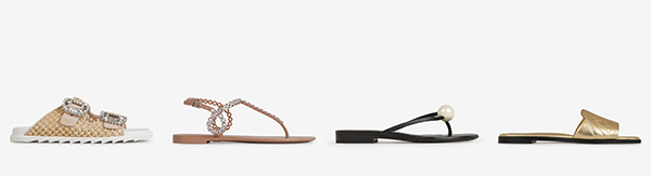 Si analizamos las propuestas de las firmas para las sandalias de uso diario que se llevarán este verano, se puede identificar una clara apuesta por los diseños sofisticados con tejidos metalizados, apliques y pedrería. Chloé y Aquazzura presentan dos modelos que combinan tonos nude y beige con broches y detalles en plateado para un efecto elegante en un look de diario. Y para las ocasiones más formales, Magda Butrym lanza la clásica sandalia con perla incrustada y Alexander McQueen apuesta por el dorado con un mule plano con logotipo.