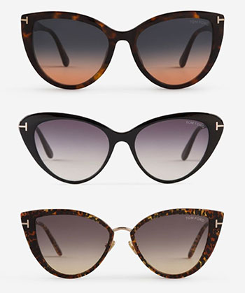 De la silueta cuadrada nos trasladamos al popular efecto ‘ojo de gato’ que Tom Ford presenta en una amplia variedad de propuestas. Se trata de un diseño también extra grande que incluye cristales redondeados acabados en punta. En la colección de la firma encontrarás los modelos ‘Julie’ y ‘Harlow’ ambas con cristal degradado.