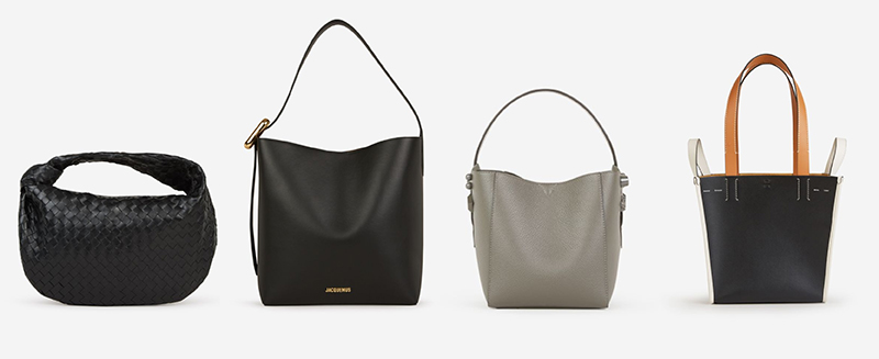 Analizando las colecciones FW23 vemos como JW Anderson, Totême o Marc Jacobs han decidido ir un paso más allá y apostar de pleno por los clásicos bolsos tipo bucket. Mientras que el modelo de Marc Jacobs replica la silueta clásica de un cubo, JW Anderson y Totême apuestan por formas más abstractas y con detalles.