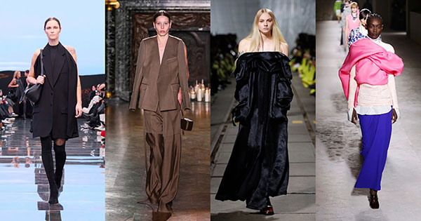 De izq a derecha: Balenciaga, Victoria Beckham, Alexander McQueen y Dries Van Noten