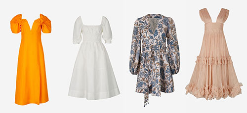 De izquierda a derecha: vestidos de Cult Gaia, Proenza Schouler, Zimmermann y Maria Lucia Hohan