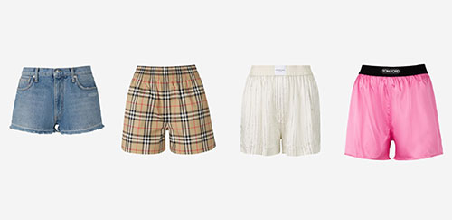 De izquierda a derecha: shorts de Off White, Burberry, Alexander Wang y Tom Ford