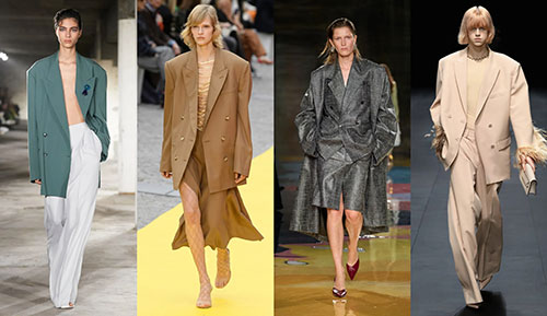 La vuelta de la sastrería conlleva una continua experimentación con las siluetas y los patrones, reinventando la clásica americana y los pantalones de pinza. En las colecciones de Dries Van Noten, Valentino, Stella McCartney o Bottega Veneta podemos ver una amplia variedad de conjuntos de dos piezas y blazers con siluetas alteradas, enfatizando en los hombros marcados y el largo de la pieza.