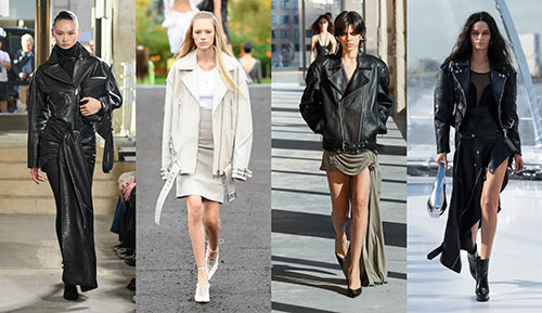 Finalizamos el análisis con la última propuesta más repetida en las pasarelas: la estética motera con las bikers de piel como protagonistas. Mientras que en Alexander McQueen o Dion Lee vemos las clásicas cazadoras de piel con hebillas, que imitan el efecto de la clásica perfecto, en Alaïa y Givenchy ofrecen alternativas que juegan con el efecto de la piel y el color como alternativa más original.